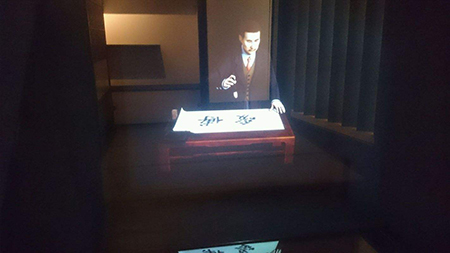 觀眾看到墻面上多個顯示設備中,每個顯示畫面中都有人物的視頻靜止影像。每臺電視下都有一個控制按鈕(可以是自動感應器),當觀眾按到其中一個時(當自動感應器撲捉有人接近 ……
